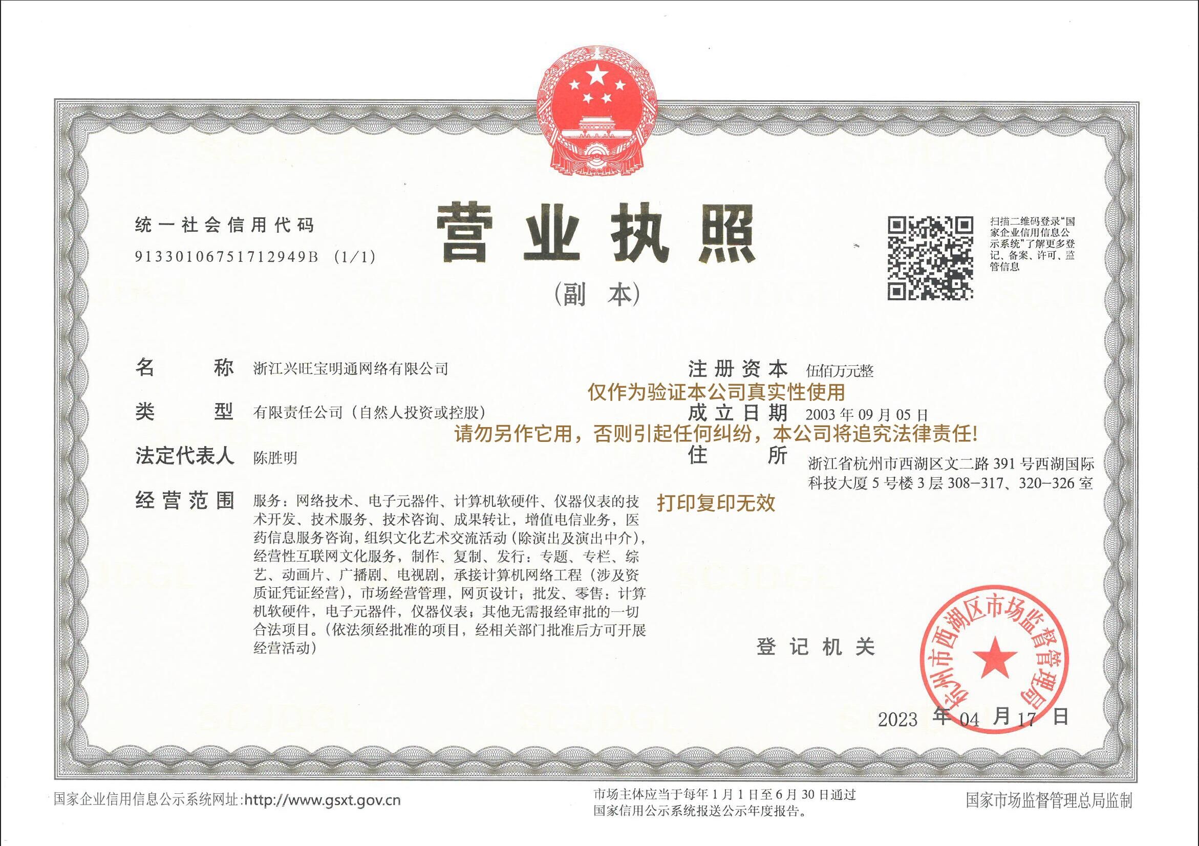Copyright 興旺寶明通 版權所有 浙江ICP備:浙B2-20100369    營業執照        投訴舉報熱線:0571-87756377