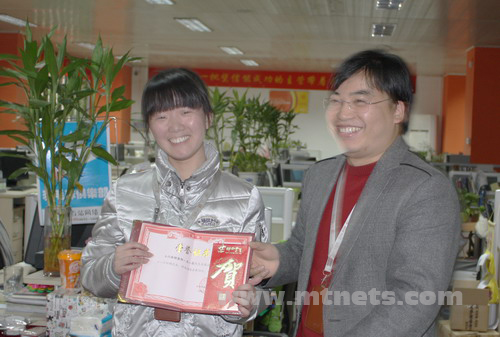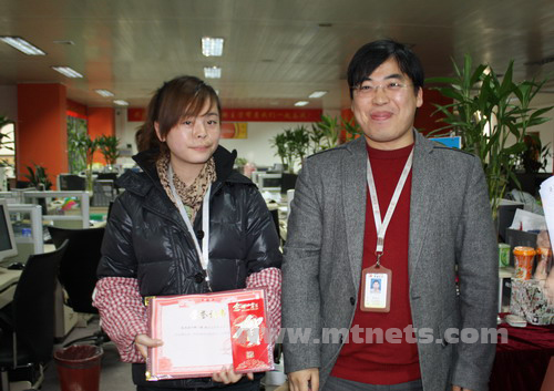 技術部鄭小冬為解決獨立網站和個性化網站出現的問題,不辭辛苦加班加點配合修改,獲得公司2009年度十二月份技術模范獎。