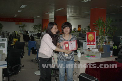 5月全體員工大會中,技術部董小釵獲得創新模范獎。自進公司以來董小釵一直工作出色,大膽創新,在程序模塊的研制上提出眾多建設性的思路,并予以執行,善于挑戰高難度技術工作。