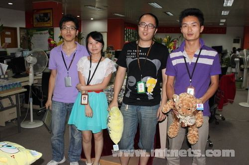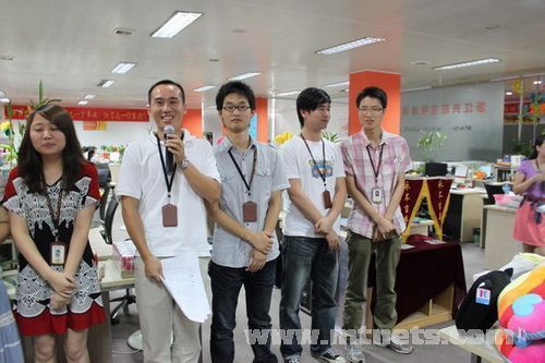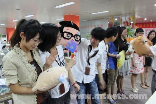 泵閥商務網美女優秀銷售為紅歌大賽個人組前三名帥哥頒獎,彭清手中的小熊可是給老婆的