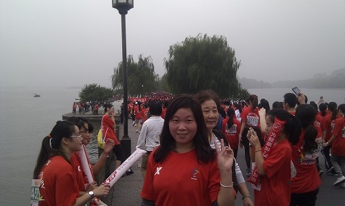 汪露:其實我參加的原因很簡單,因為沒見過這么浩大的場面,覺得人生很難再遇一次,就覺得應(yīng)該要去見見,人生苦短,趁年輕,趁活著,趁還有那個心情。跑后算是見到的,人山人海,還幾乎都是清一色服裝,放眼望去,一堆紅色在逛西湖。