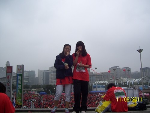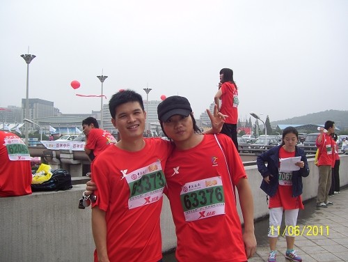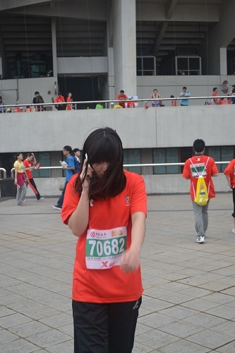 韓禮清:參加馬拉松完全是一次偶然的機會。當時我沒報名參加的,本來是為拉拉隊去的,結(jié)果有事凱凱沒去,多了一個名額,猶豫再三代替凱凱跑了。試想,一個人如果連續(xù)跑6.8公里都能堅持下來。還有什么困難不可以克服!于是我我抱試試的態(tài)度,最終也堅持下來了!挺鍛煉自己的意志,促進身心健康。跑跑挺好的。能夠有一次萬人一起跑步,也是一件非常開心的事情。值得留念!下次有這樣的活動還想繼續(xù)參加!