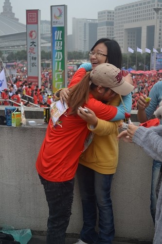 丹丹到終點了,跟好姐妹興玉擁抱一個