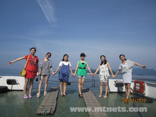 張萍說:第一站我們去漂流,漂了兩個(gè)小時(shí),還好有小強(qiáng),把我們的皮劃艇一路拉上岸。同時(shí)我們還發(fā)現(xiàn)了一個(gè)很好的可以免費(fèi)游泳的地方。第二站千島湖是個(gè)好地方,魚好,風(fēng)景好,吃完魚頭走了一個(gè)小時(shí)回到住處。躺在床上,回味魚頭的美味,想著一路的美景,感受同事親切的聊天,真是美哉快哉。這次旅游很熱很累,但很溫馨,很瘦身。感謝我們的組織部長---皇后。
