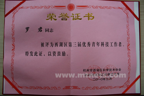 筆者:首先,恭喜你獲得西湖區第三屆優秀青年科技工作者的光榮稱號,可以談談你的感受嗎?