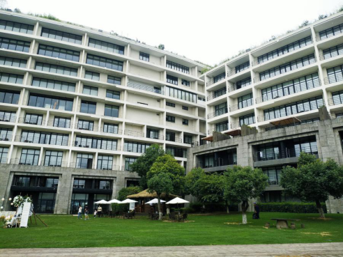 整個酒店抱湖而建,隱匿于山水之中