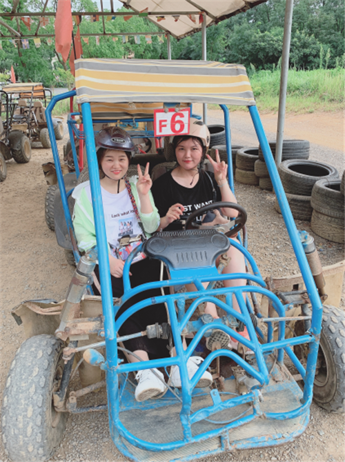 雖然薰衣草花海早就謝了,但我們?yōu)榱藠蕵讽?xiàng)目而來的,主要有山地卡丁車,碰碰船,滑草,騎馬,射箭,和“草泥馬”互動(dòng)。游園一圈下來意猶未盡,有些同學(xué)還善于制造笑點(diǎn),體會(huì)到了歡樂和輕松一刻。