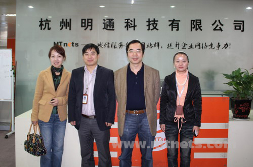 11月13日,杭州市信息辦產業發展處處長龔加偉、副處田華蒞臨杭州明通科技有限公司參觀指導。明通CEO陳勝明熱情接待了市信息辦領導,并在總經理辦公室介紹了明通公司各個行業網站的發展情況和經營理念。龔處、田處均對公司具有激情和實力的年輕團隊予以鼓勵和贊賞,希望明通旗下網站在企業信息化建設的道路上繼續發揚領路人的作用,推進更多行業、更多企業發展信息化,合理運用電子商務提升企業競爭力。