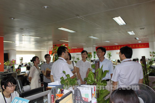 王處一行在陳總等人的陪同下參觀了公司技術部、市場部、服務部、編輯部等辦公區域,對公司的發展規模表示贊賞。陳總詳細介紹了公司各職能部門的主要工作和業績,講解了公司近幾年的發展歷程和增長數據。王處鼓勵明通發揮公司核心優勢,繼續保持這樣高速發展的勢頭,杭州信息服務業的發展需要明通這樣有實力的科技企業。